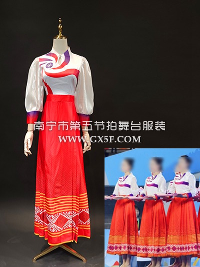 07G427杏色长袖衣红色半身裙新中式唐装旗