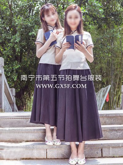08G1015土黄色衣藏蓝长裙五四学生装复古改