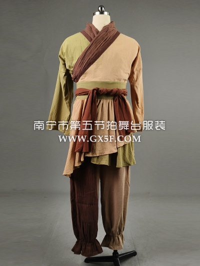 08B1538褐色广袖汉服彭咸春秋战国秦汉魏晋