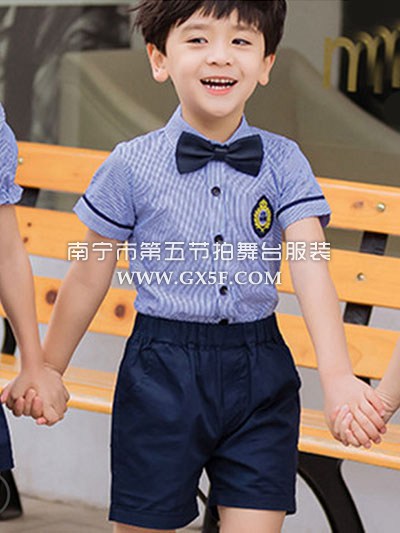 12B1025A儿童男蓝白条纹短袖衬衫藏蓝短裤
