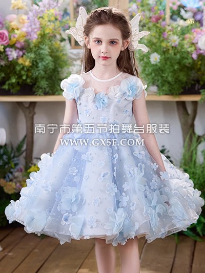 12G1806/12B1810儿童女蓝色渐变短袖连衣裙