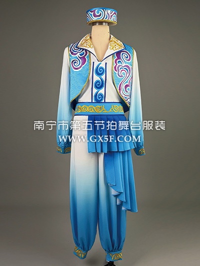 01B966男蓝衣绿袖蓝裤橙边壮族少数民族群