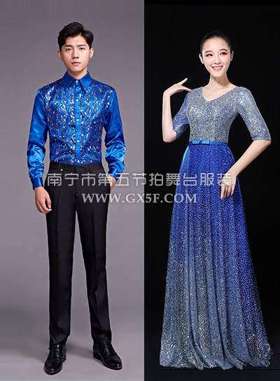 02G1649/02B1652(单套价)女蓝衣白裙/男蓝衣